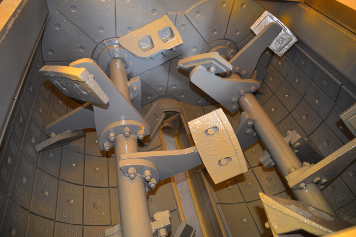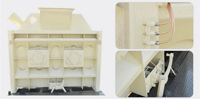 ●兩根攪拌軸上的多組攪拌臂和葉片組成攪拌裝置,保證筒體內(nèi)混合料能在短時(shí)間內(nèi)作充分的縱向和橫向摻和,達(dá)到充分拌合的目的。