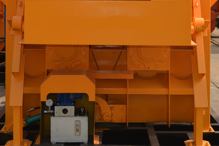 ●JS1000攪拌機(jī)采用液壓系統(tǒng)驅(qū)動(dòng),與傳動(dòng)的氣動(dòng)形式相比具有結(jié)構(gòu)緊湊、動(dòng)作平穩(wěn)、開門定位準(zhǔn)確、能手動(dòng)開門等特點(diǎn),油泵系統(tǒng)產(chǎn)生的高壓油通過(guò)控制系統(tǒng),經(jīng)高壓油管的作用到油缸驅(qū)動(dòng)力料門的開關(guān),以實(shí)現(xiàn)卸料門的開門到位的任意調(diào)節(jié),以實(shí)現(xiàn)不同的卸料速度。